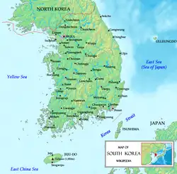 - ↑ Incluant Bukjeju (nord de Jeju).