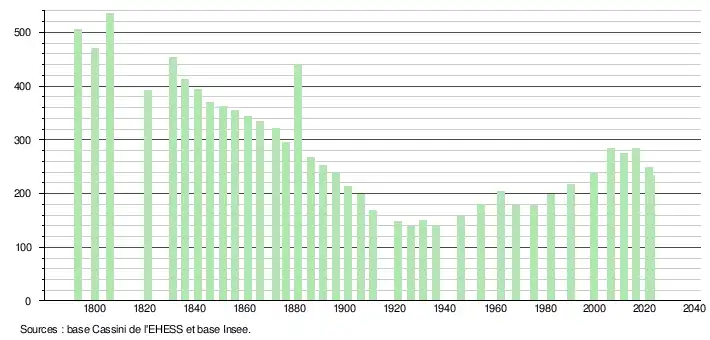 - ↑ Population municipale de référence en vigueur au 1er janvier 2025, millésimée 2022, définie dans les limites territoriales en vigueur au 1er janvier 2024, date de référence statistique : 1er janvier 2022.