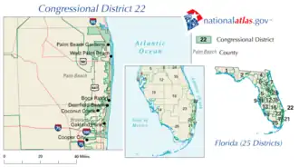 Le 22e district congressionnel de Floride est un district situé dans le sud-est de la Floride. Dans le cycle de redécoupage de 2020, il a été désigné comme successeur du 21e district précédent et comprend Palm Beach, West Palm Beach, Boynton Beach et Delray Beach, ainsi que le comté non incorporé de Palm Beach. L'itération précédente du 22e district, qui s'étendait de Fort Lauderdale à Boca Raton, a été rebaptisée 23e district.