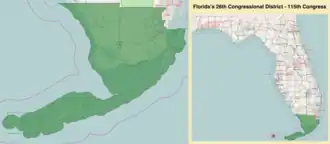 La 26e district congressionnel de Floride est un district, créée pour la première fois dans le sud de la Floride en 2013 à la suite de l'augmentation de la population de la Floride lors du recensement de 2010[1]. Dans le cycle de redécoupage de 2020, il a été désigné comme successeur du 25e district précédent et comprend la majeure partie de l'intérieur du comté de Collier ainsi que la banlieue nord-ouest de Miami, notamment Doral, Hialeah, Miami Lakes et certains quartiers de Miami même, tels que Allapattah et Wynwood. L'itération précédente du 26e district, qui comprenait le comté de Monroe et la banlieue sud-ouest de Miami, a été rebaptisée 28e district nouvellement créé.
