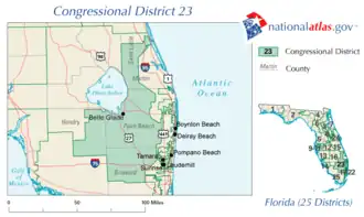 La 23e district congressionnel de Floride est un district situé dans la région du Grand Miami et couvrant certaines parties du comté de Broward et du sud du comté de Palm Beach. Dans le cycle de redécoupage de 2020, il a été désigné comme successeur du 22e district précédent et comprend Boca Raton, Coral Springs, la majeure partie de Deerfield Beach et Fort Lauderdale, ainsi que des parties de Pompano Beach. L'itération précédente du 23e district, qui comprenait Davie et Pembroke Pines, a été rebaptisée 25e district. Le district, ainsi que deux autres districts du Grand Miami, possède l'une des plus fortes concentrations de Juifs américains, représentant environ 14 % de l'électorat[1].