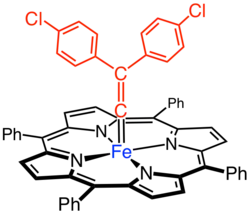 - ↑ Daniel Mansuy, Jean Paul Battioni, David K. Lavallee et Jean Fischer, « Nature of the complexes derived from the reaction of 1,1-bis(p-chlorophenyl)-2,2,2-trichloroethane (DDT) with iron porphyrins: Crystal and molecular structure of the vinylidene carbene complex Fe(TPP)(C:C(p-ClC6H4)2) », Inorganic Chemistry, vol. 27, no 6, , p. 1052–1056 (DOI 10.1021/ic00279a023).