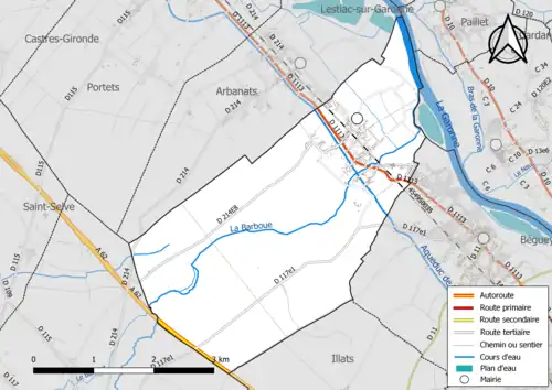 Les communes limitrophes en sont Paillet au nord-nord-est sur la rive droite (nord) de la Garonne, Rions au nord-est sur les deux rives de la Garonne, Podensac à l'est, Illats au sud-est, Saint-Michel-de-Rieufret au sud-ouest et Arbanats au nord-ouest.