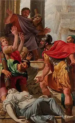 Verginius demande alors à s'entretenir seul avec la nourrice et sa fille, pour tirer au clair ce qu'il en est de sa naissance. Appius acquiesce. Verginius tire Virginie à l'écart, saisit un couteau à l'étal d'un boucher, le lui plonge dans le cœur pour lui rendre sa liberté et maudit Appius[3].