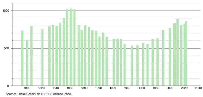 - ↑ Fiches Insee - Populations de référence de la commune pour les années 2006, 2007, 2008, 2009, 2010, 2011, 2012, 2013, 2014, 2015, 2016, 2017, 2018, 2019, 2020, 2021 et 2022.