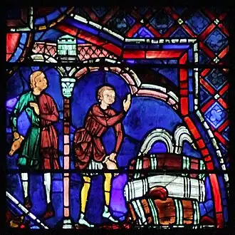 - 1 2 3 4 « Vie de saint Rémi »(Archive.org • Wikiwix • Archive.is • Google • Que faire ?), vitrail 12, « La cathédrale de Chartres »(Archive.org • Wikiwix • Archive.is • Google • Que faire ?).