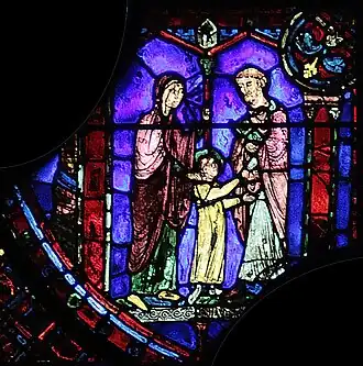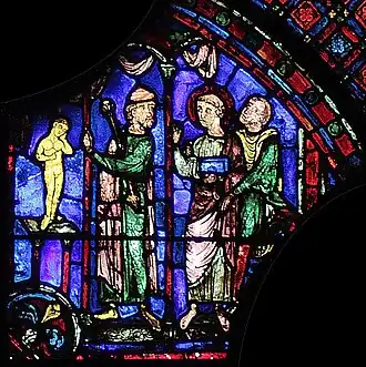 Le vitrail est situé dans le déambulatoire sud de la cathédrale Notre-Dame de Chartres. Il est numéroté 008 dans le Corpus vitrearum. Le renfoncement qu'il occupe était primitivement dédié à une petite chapelle ornée de deux lancettes, symétrique de celle située dans le déambulatoire nord, avec le vitrail de Charlemagne. La lancette de gauche a été condamnée entre 1350 et 1358, pour ouvrir l'accès à la chapelle Saint Piat, et le vitrail historié qui l'ornait primitivement a été remplacé par la grisaille actuelle (numéroté 006).