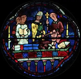 3. 1 2 3 4 5 6 7 8 9 10 11 12 13 « Vie de Saint Silvestre »(Archive.orgWikiwixArchive.isGoogle • Que faire ?), vitrail 08, « La cathédrale de Chartres »(Archive.orgWikiwixArchive.isGoogle • Que faire ?)