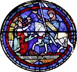 Le vitrail de 7,47 × 2,07 m s'inscrit dans la lancette de gauche, la lancette de droite étant occupée par le vitrail de la Vie de la Vierge[1]. La verrière a été exécutée entre 1217 et 1220, elle est contemporaine de la cathédrale actuelle reconstruite après l'incendie de 1194.