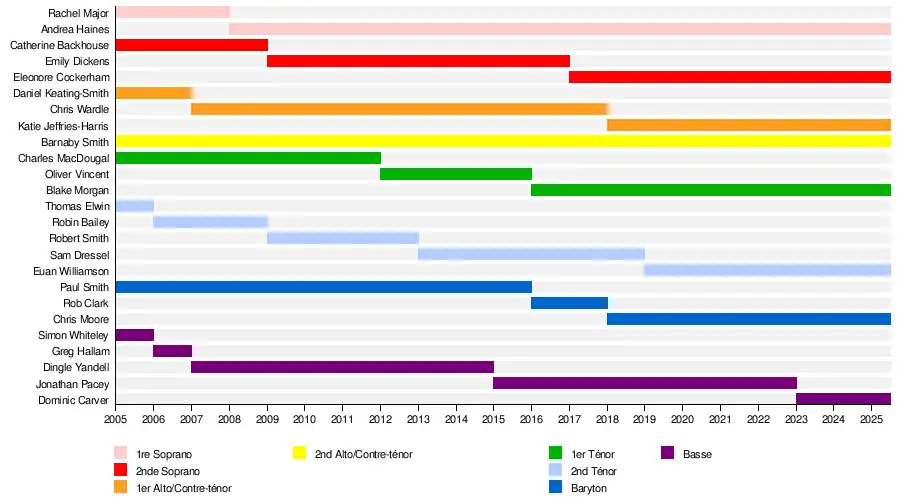 - Barnaby Smith : 2d alto-contre-ténor (depuis 2005)