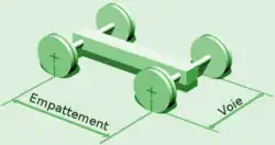 La voie est la distance entre les deux roues d'un même essieu. Il ne faut pas confondre la voie et la largeur du véhicule qui est une dimension de carrosserie[1].