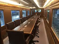- 30 voitures aménagées en salon à allée centrale (2+1 sièges par rangée, disposés en vis-à-vis avec tablettes centrales), offrant 48 places,