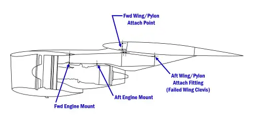 Lors du décollage du vol 191, les forces aérodynamiques furent suffisantes pour arracher complètement le pylône de l'aile, dû à la fatigue. La perte du moteur, combinée à la position relevée des becs sustentateurs, ne pouvait qu'entraîner un désastre.