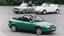 C'est en 1993 que Volkswagen présentera la version décapotable de cette troisième génération de Golf, toujours avec l'arceau de sécurité caractéristique. La même année, VW a répondu à un souhait de longue date de ses clients : avec la première Golf break, les amateurs d'espace de rangement n'avaient plus besoin de se tourner vers l'Opel Astra ou la Ford Escort.