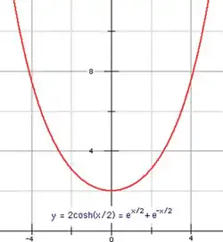 La chaînette / voûte est plus ou moins ouverte selon les facteurs multiplicatif/de division (2 dans l'exemple ci-contre).