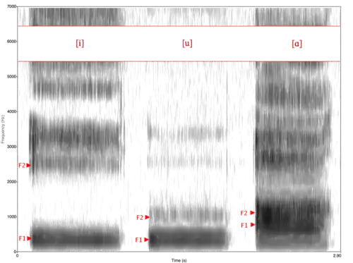 L'acoustique étudie les émissions vocales et pratique l'analyse spectrale des enregistrements, en utilisant, souvent un sonagraphe pour identifier les formants[8].