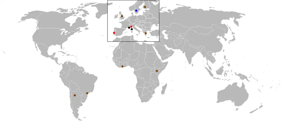 | Noir = Asphalte | Marron = Terre / Gravier | Bleu = Neige/ glace | Rouge = Surface mixte | ||||||||||