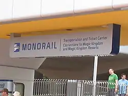 Trois lignes de monorail, entièrement en viaduc, œuvrent sur le Walt Disney World Resort : deux d'entre elles forment une double boucle autour du Seven Seas Lagoon, la troisième mène au parc d'Epcot. La station Transportation and Ticket Center est commune à toutes les lignes. Cette station permet de rejoindre les deux principaux parcs d'attractions de Disneyworld : Magic Kingdom et Epcot Center. Elle est implantée au centre d'un immense parking où les visiteurs doivent laisser leur voiture. Cette station est également en correspondance avec les lignes d'autobus qui assurent la diffusion complémentaire des visiteurs vers les résidences hôtelières ou récréatives, mais aussi vers le 3e parc d'attractions le plus récent : Disney's Hollywood Studios