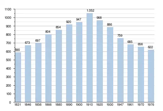 - Sources:INS, Rem:1831 jusqu'en 1970=recensements, 1976= nombre d'habitants au 31 décembre