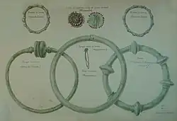 Des fouilles du XIXe siècle ont mis au jour trois fibules remarquables en or avec des perles de corail.