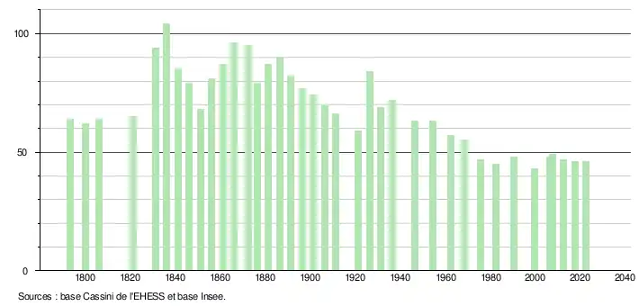 (Sources : Ldh/EHESS/Cassini jusqu'en 1999[19] puis Insee à partir de 2006[28].)