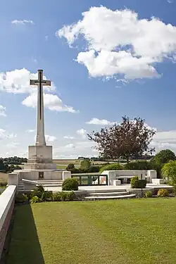 Au départ, 46 soldats britanniques ont été inhumés à l'intérieur du cimetière communal, puis devant l'afflux des décès une extension , qui a été utilisée tout au long de la guerre, a été créée à l'est.
