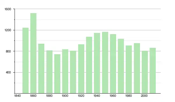 | 1960 | 1 124 | ▼ −3,6 % | |