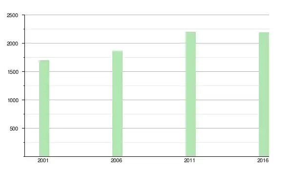 Le recensement de 2006 y dénombre 1 864 habitants, soit 9,7 % de plus qu'en 2001.