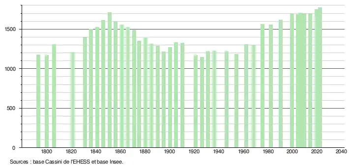 De 1962 à 1999 : population sans doubles comptes ; pour les dates suivantes : population municipale.