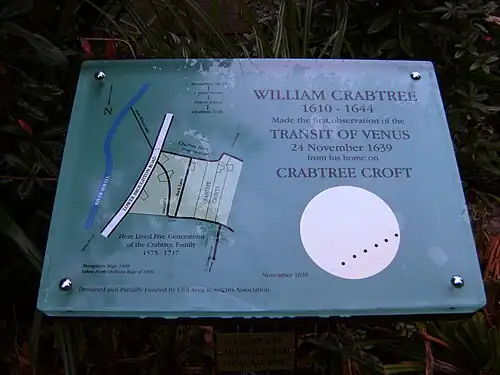 Horrocks a aussi prédit qu’un passage devait avoir lieu à la date du . Le 9 juin 2004, une plaque commémorative à la mémoire de William Crabtree a été dévoilée à la jonction de Lower Broughton Road et Priory Grove qui marque la limite nord de Crabtree Croft. Une autre plaque commémorative a été dévoilée à quelques mètres de là en décembre 2005, à Ivy Cottage 388-90 Lower Broughton Road, qui aurait probablement été la maison de Crabtree et de sa famille à l'époque où il collaborait avec Horrocks.