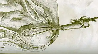 Il a également conçu une version améliorée de la pince obstétricale, qui a été révélée récemment après que la famille Chamberlen (en), qui pratiquait les accouchements, l'ait gardée secrète pendant des générations[4]. Il a fait connaître l'utilisation de ces instruments bien qu'il ait encouragé l'accouchement naturel comme étant la meilleure méthode d'accouchement en raison de sa nature moins invasive. Dans sa nouvelle version du forceps, Smellie a raccourci et courbé les lames et les a dotées d'un mécanisme de verrouillage[5]. En outre, il a décrit le mécanisme de l'accouchement, conçu comme une manœuvre pour faire sortir la tête d'un bébé en siège et publié ses enseignements. Il a été le premier à documenter le processus d'accouchement naturel et à détailler la méthode par laquelle la tête de l'enfant sortait du bassin de sa mère[6],[7].