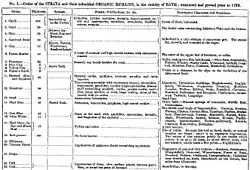En 1816, il publie A Geological Table of Organized Fossils[5], un des premiers prémisses de l'échelle des temps géologiques. Smith est probablement le premier à comprendre que les strates et leurs fossiles sont dans un ordre naturel identique à l'échelon local, national et au-delà. Le principe de superposition, qu'une couche déposée sur une autre est plus récente, est déjà connu depuis la fin du XVIIe siècle mais n'est pas alors considéré comme réellement significatif. Cette table résume bien un des principaux apports de Smith à la géologie, l'utilisation systématique des fossiles pour l'identification des strates.
