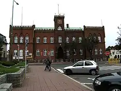 - L'hôtel de ville néogothique en briques d'un rouge vif (1881).