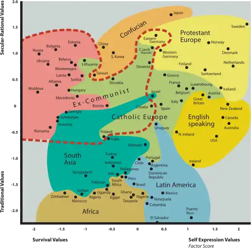L'enquête mondiale sur les valeurs (World Values Survey) (WVS) est un projet international d'enquêtes sur l'évolution des valeurs et des croyances autour du monde. Le projet est lancé en 1981 par Ronald Inglehart qui, avec Christian Welzel, a mobilisé un réseau international de chercheurs en sciences sociales. À la fin du XXe siècle, c'est l'une des plus vastes enquêtes par sondage jamais réalisées[1]. Sa branche européenne est l'enquête European Values Study (EVS).