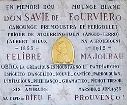 Xavier de Fourvière (né Albert Rieux) est un chanoine de l'ordre des prémontrés, né le à Robion (Vaucluse) , où il est mort le . Avec Frédéric Mistral il a œuvré pour la renaissance de la langue d'oc, comme prédicateur et comme auteur d'ouvrages. Il fut élu majoral du Félibrige en 1889.