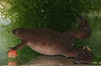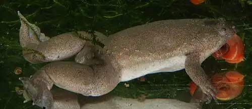 Xenopus tropicalis est une espèce d'amphibiens de la famille des Pipidae[1]. Ces crapauds griffus à peau lisse vivent dans des étangs et des mares en Afrique tropicale. Ils peuvent mesurer entre 4 et 6 cm.
