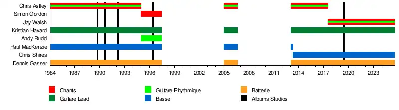 - Chris Astley : Guitare rythmique, Chant (1984–1994, 2005–2006, 2013–2017)