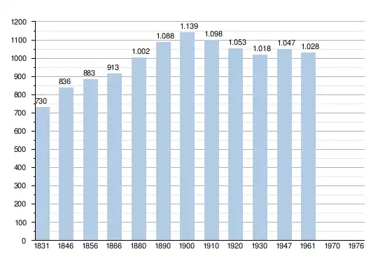 - Sources:INS, Rem:1831 jusqu'en 1970=recensements, 1976= nombre d'habitants au 31 décembre