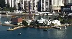 Le Yacht Club royal de Hong Kong sur l'ancienne île Kellett (en). Vu depuis l'ouest. | |