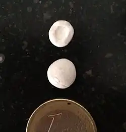 Durant la période précédant la mue, les gastrolithes, qui sont des structures de stockage du calcium, sont élaborés par paire dans l'estomac des crustacés. Ils ont l'aspect de petits cailloux blanchâtres, d'un diamètre de quelques millimètres à environ un centimètre, en forme de demi-sphère avec une face concave (rappelant la forme d'un chapeau de champignon de Paris). Ils disparaissent lorsque la nouvelle carapace devient rigide. Ces gastrolithes ne s'observent que chez les crustacés décapodes d'eau douce, les équilibres ioniques étant différents en milieu marin.