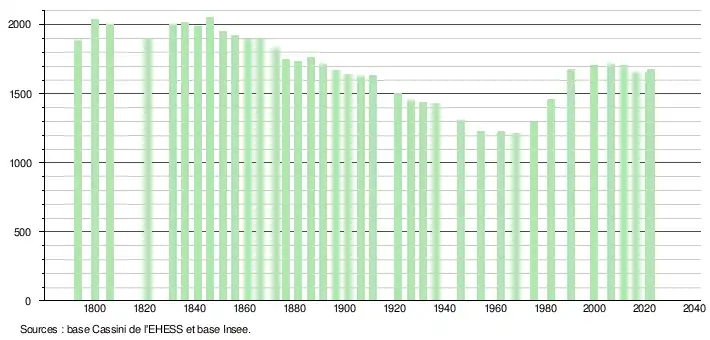 - ↑ Fiches Insee - Populations de référence de la commune pour les années 2006, 2007, 2008, 2009, 2010, 2011, 2012, 2013, 2014, 2015, 2016, 2017, 2018, 2019, 2020, 2021 et 2022.