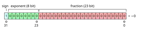 Dans les formats binaires à virgule flottante IEEE 754, les valeurs nulles sont représentées par l'exposant biaisé et le signifiant, tous deux étant nuls. Le zéro négatif a le bit de signe mis à un. On peut obtenir un zéro négatif comme résultat de certains calculs, par exemple comme résultat d'un sous- dépassement arithmétique sur un nombre négatif (d'autres résultats peuvent également être possibles), ou −1.0×0.0, ou simplement comme −0.0 .