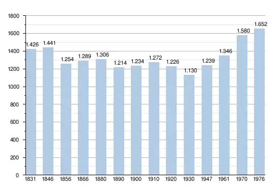 • Sources : INS, Rem. : 1831 jusqu'en 1970 = recensements, 1976 = nombre d'habitants au 31 décembre[2].