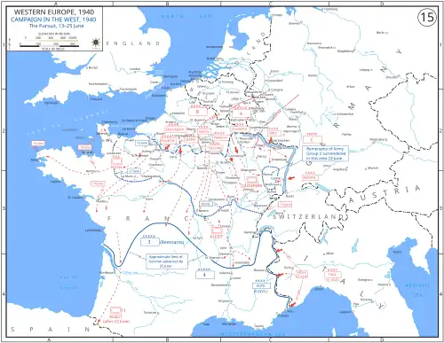 • initialement en , le pays est coupé en quatre : zone occupée (dont une petite partie italienne), zone libre (séparation par une ligne de démarcation), Alsace-Moselle annexée de facto par le Reich, et deux départements du Nord sous l'administration militaire allemande de Bruxelles ;