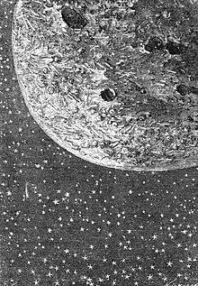 - Autour de la Lune, Jules Verne, éd. Hetzel, coll. « Voyages extraordinaires », 1869, chapitre XXIII, p. 177 (lire en ligne)