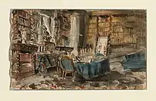 Cabinet de travail de Flaubert à Croisset, par Georges-Antoine Rochegrosse, 1874.