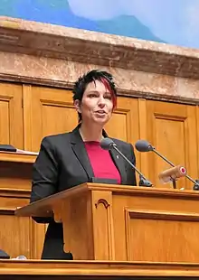 Sandra Sollberger en 2018 à la tribune du parlement.