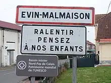 Panneau d'agglomération d’Évin-Malmaison.