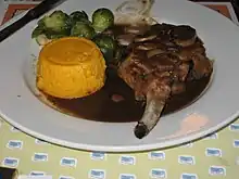 - (Cuisine) Se dit de diverses préparations servies avec des légumes (notamment des carottes, navets et petits ognons) étuvés au beurre.