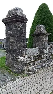 - Petit escalier surmonté d’une dalle servant à entrer dans les enclos paroissiaux en Bretagne, tout en empêchant les animaux de passer.